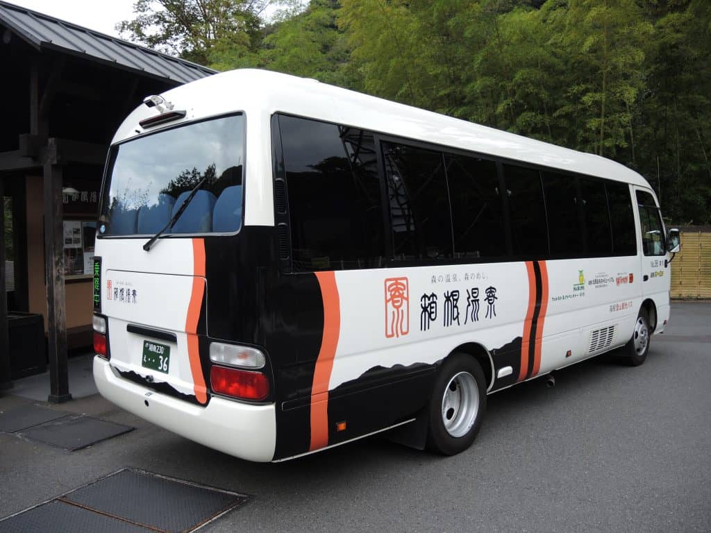 แล้วนั่งรถบัสรับ-ส่งฟรีของ Hakone Yuryo (นั่งบัสแค่ 3 นาที)
