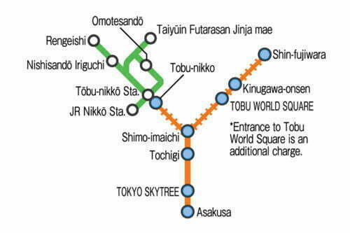 บัตรนิกโกพาส สามารถใช้โดยสารรถไฟ Tobu ตั้งแต่สถานี Asakusa จนถึง สถานี Shimoimachi ได้