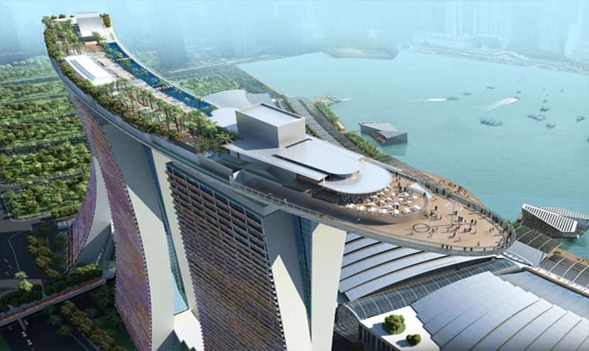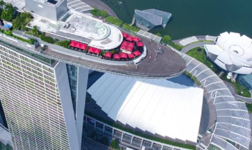 มารีน่า เบย์ แซนด์ สกายพารค์ (Marina Bay Sand Skypark) เป็นดาดฟ้าที่ไม่เหมือนใคร โดยสูงจากพื้นดิน 200 เมตร มีสระว่ายน้ำลอยฟ้าและจุดชมวิวอันงดงาม ที่มารีน่า เบย์ แซนด์ สกายพารค์ มีจุดชมวิวขนาดมโหฬารดาดฟ้าสูงที่ท้าทายแรงโน้มถ่วงนี้เป็นดาดฟ้าที่ใหญ่ที่สุดในโลก ด้วยพื้นที่ 1.2 เฮกตาร์ทำให้ SkyPark นี้ยาวกว่าหอไอเฟลเมื่อวางนอน และใหญ่พอที่จะจอดเครื่องบินจัมโบ้เจ็ท A380 ได้ถึง 4 ลำครึ่งเลยทีเดียว ที่นี่ประกอบด้วยจุดชมวิวที่สามารถซื้อตั๋วเข้าชม สวนหย่อมเขียวขจี ภัตตาคารชั้นเลิศ และสระว่ายน้ำลอยฟ้าสุดพิเศษพร้อมวิวที่สวยงามสุดแสนประทับใจ รวมถึงทัศนียภาพตระการตา ที่ผู้ซื้อตั๋วเข้าชมวิวของจุดชมวิว Sands SkyPark Observation Deck ซึ่งจะทำให้คุณสามารถชมวิวทิวทัศน์แบบกว้างไกล 360 องศาของเส้นขอบฟ้าสิงคโปร์