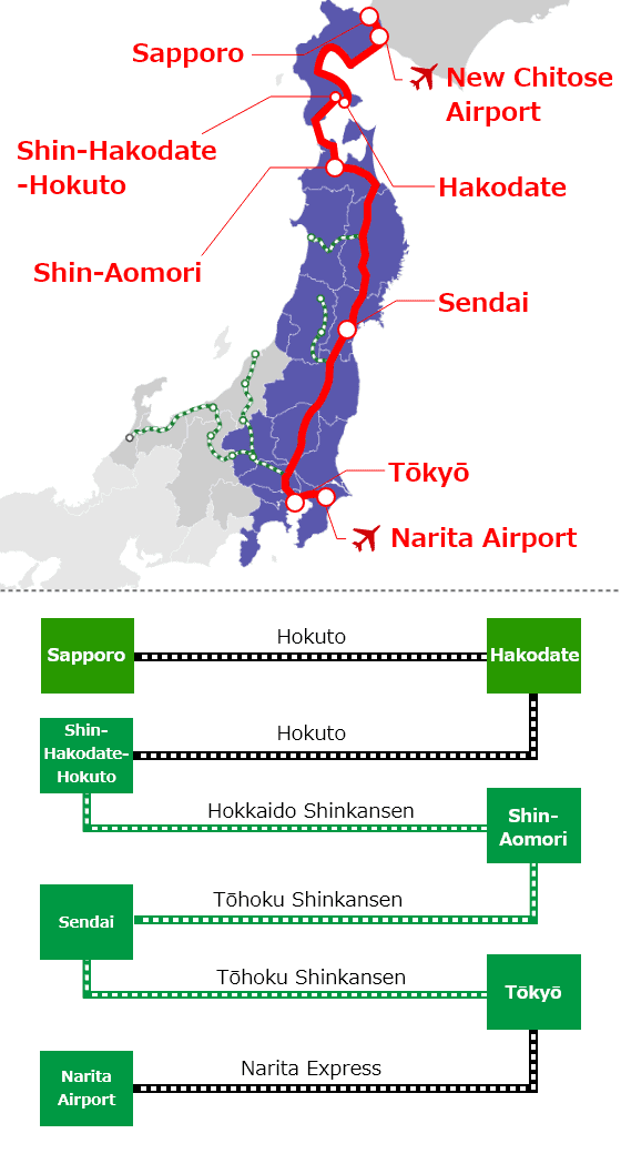 ท่านสามารถดูแผนที่การให้บริการ JR East-South Hokkaido ได้ — คลิกที่นี่
