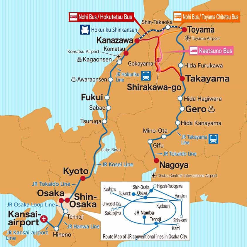 บัตร JR Takayama – Hokoriku Area Tourist Pass 5 วัน ที่จะพาคุณเดินทางเที่ยว 3 เมืองใหญ่จาก 3 ภูมิภาคทั้ง โอซาก้าจากคันไซ , นาโกยะและฟุคุอิ จากชูบุ ,คานาซาวะและโทยามะจากโฮโคริคุ และอีกหลายเมืองที่น่าสนใจ ที่มีสถานที่ท่องเที่ยวที่มีชื่อมากมายทั้ง เกียวโต,ฟุคุอิ,คานาซาวะ,โทยามะ,หมู่บ้านชิราคาวาโกะ,ทาคายาม่าและนาโกย่า ที่รอให้คุณไปเยือน